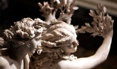 Die Szene zeigt die Verwandlung Daphnes in einen Lorbeerbaum. Um den Nachstellungen Apollos zu entgehen, verwandelt der Flussgott Peneios seine Tochter Daphne.